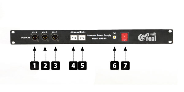 ⑤ B+C群组连通开关:按下时,群组B与群组C合并通话